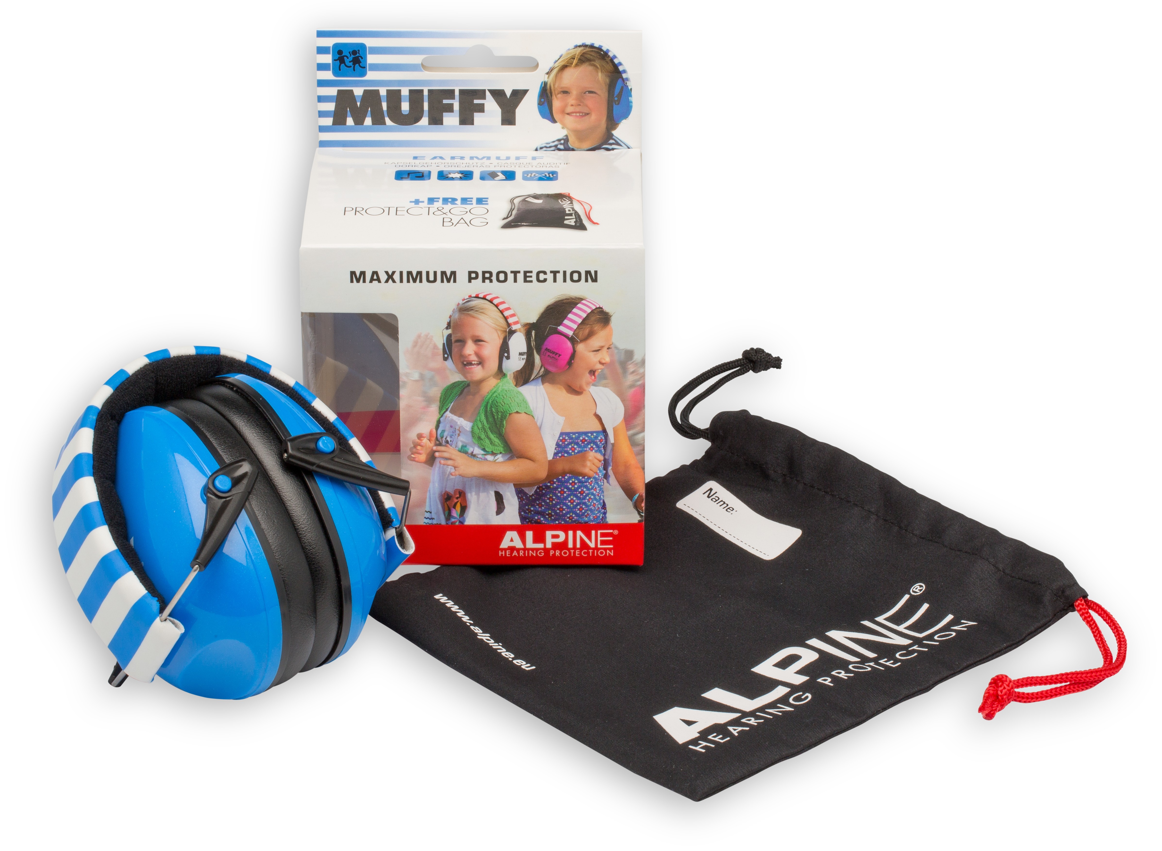Alpine Muffy&trade The Alpine Muffy have been especially designed for the ears of small children and can be used in various noisy situations. The Alpine Muffy is available in pink, blue, white, black and even a Smile-version.